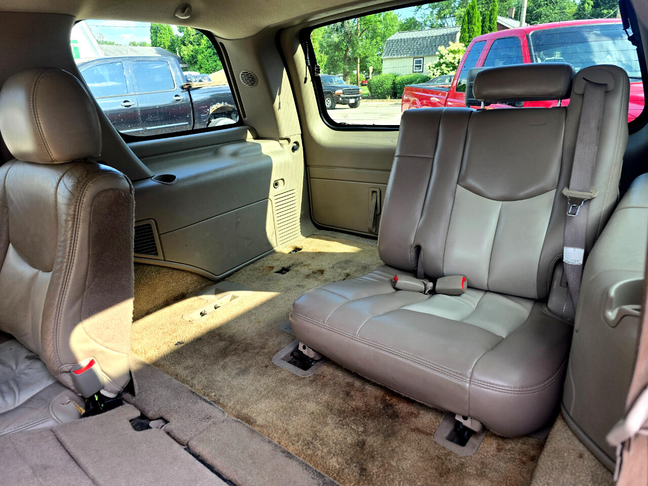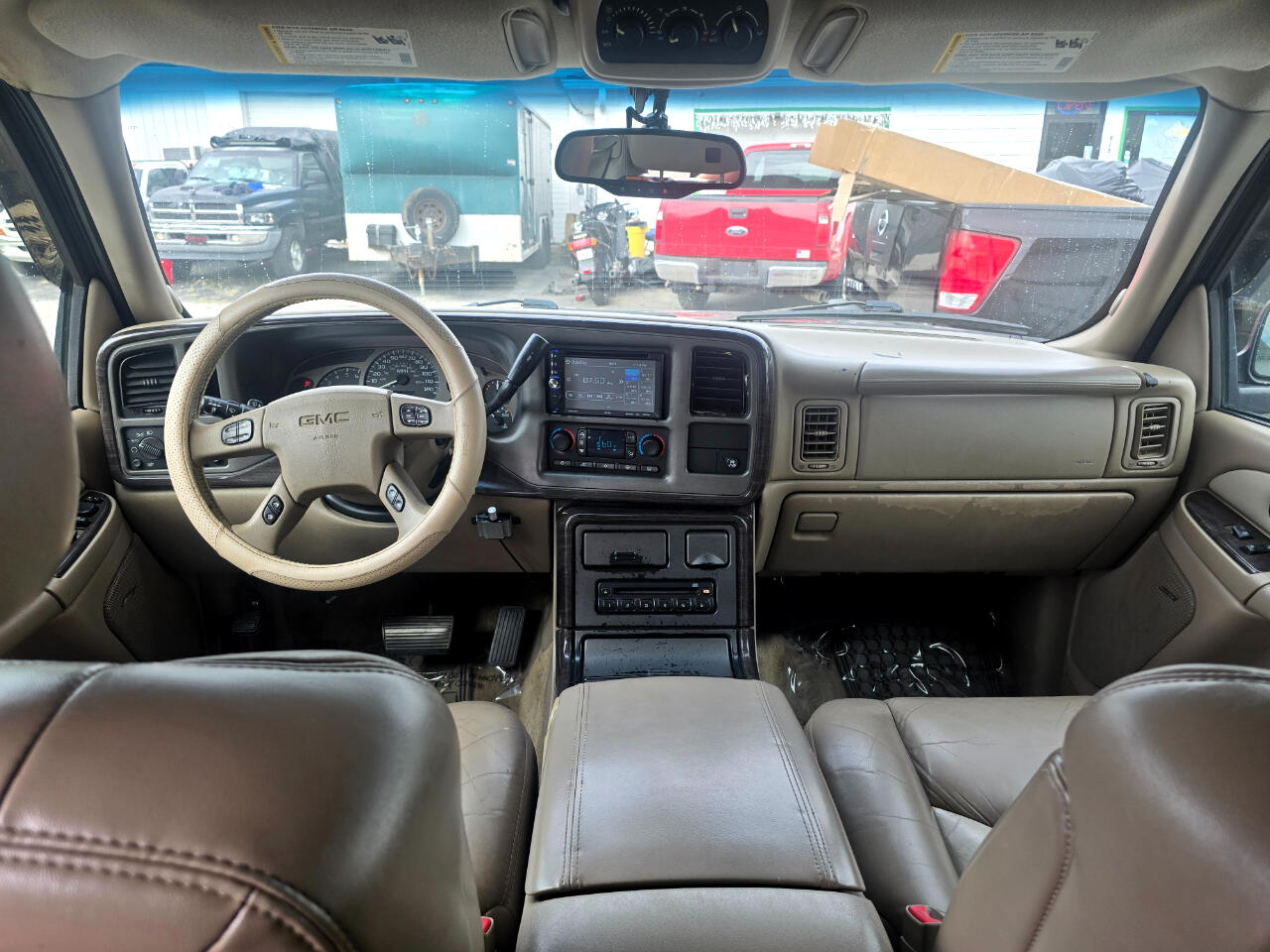 Great running and driving AWD Yukon Denali! Power windows and door locks, heated front and middle row seats (photo), dual with rear climate control. Have additional 3rd row seat, fixing locking clip. Ceiling DVD player, aftermarket BOSS touch screen radio with AUX capability. Aftermarket tail lights, tow package, great rim/tires (photo).