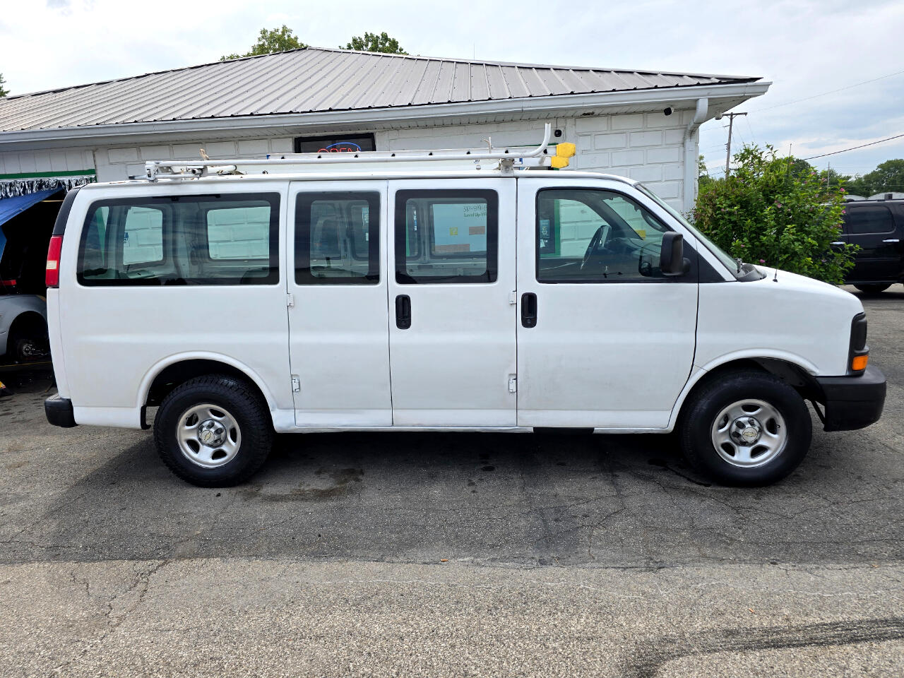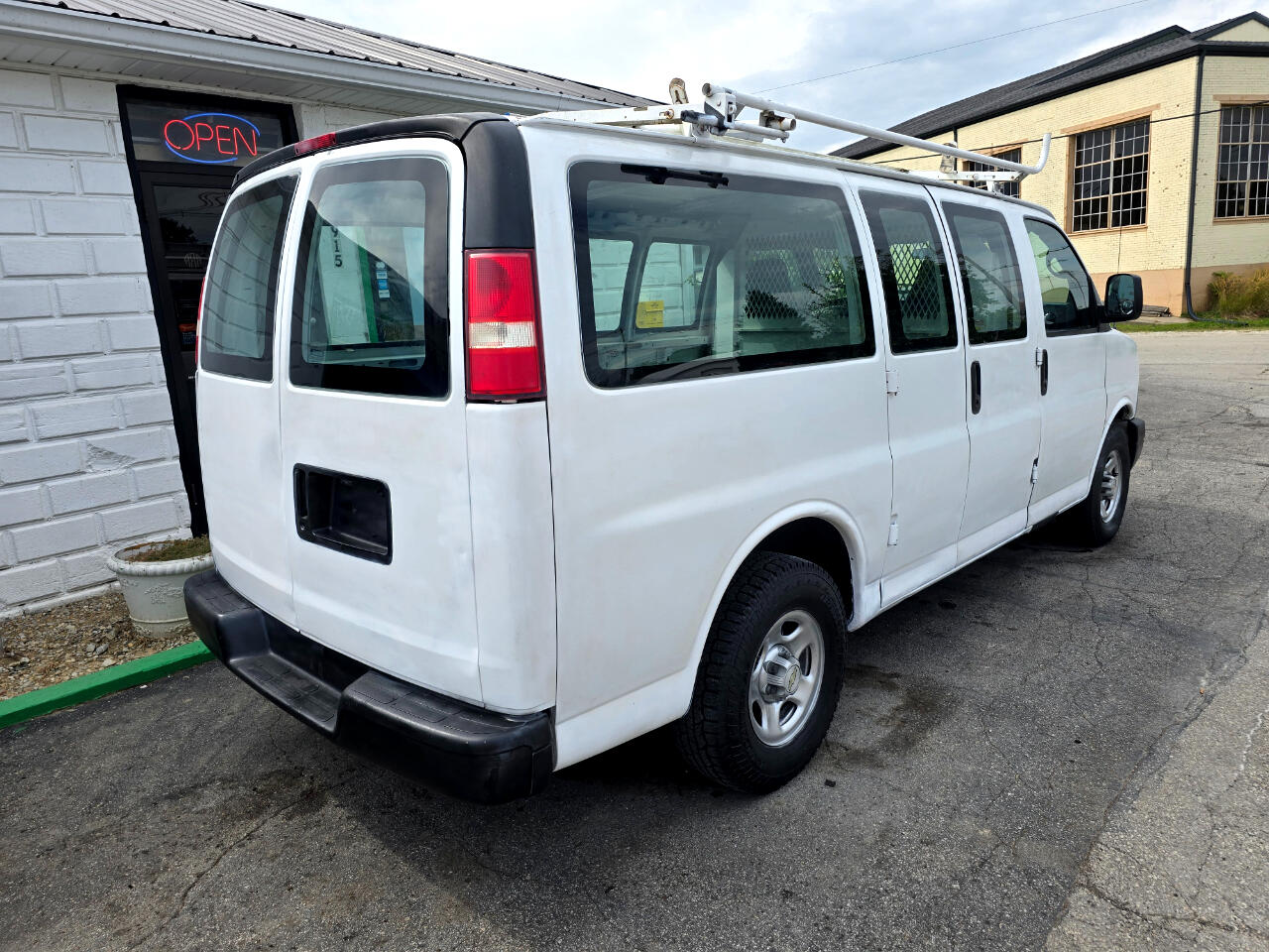 Ready to get to work! Full-size work van with Low Miles and cool air! Hot heat, manual crank windows, roof ladder rack (1 ladder included), have all the shelves for the rear interior if interested. Belonged to a roofing company before hand, good tires (photo), has some minor rust here or there but nothing major.