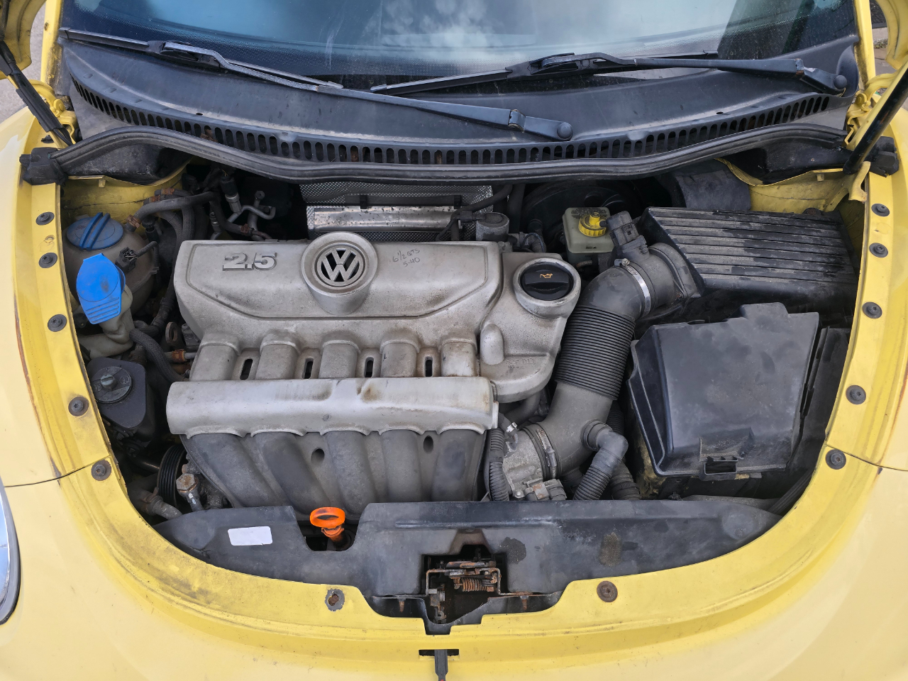 FRESH trade-in, 5-Speed manual New Beetle, 2.5 liter 5 cylinder engine, old lady driven and owned for the past 10 years! Great running and driving gas saver, clutch feels great (no slipping or grinding), ice cold air/hot heat, power windows and door locks with functioning key fob. Dent on passenger lower side skirt (photo), great tires (photo), peppy little car!