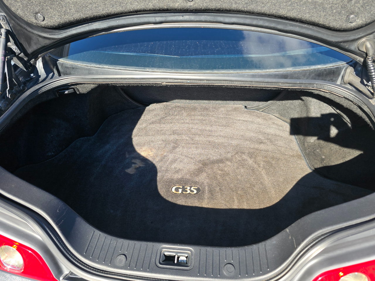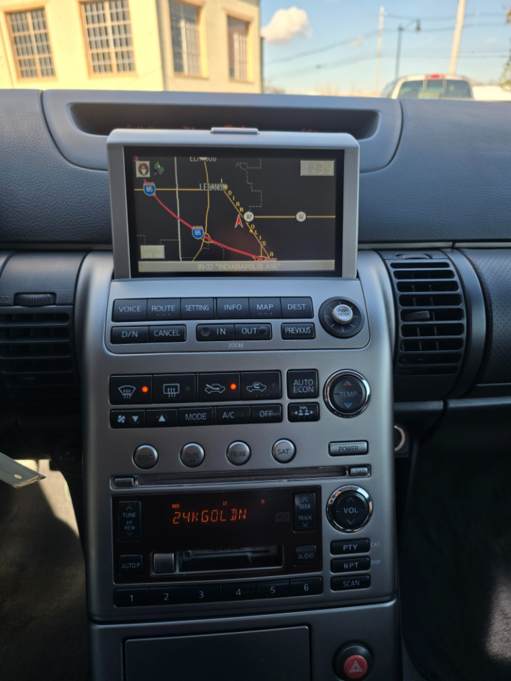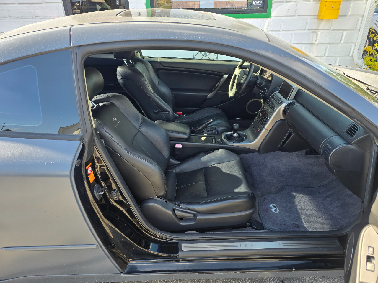 Infiniti G35 6-speed manual! (350z with a back seat) Hot heat/cold air, clutch feels great (no slipping or grinding), power windows and door locks. Factory pop-out navigation screen, factory radio with CD player, heated front seats, good tires (photo), it has a Plasti Dip paint job on it that isn't the best (Gunmetal Gray color)